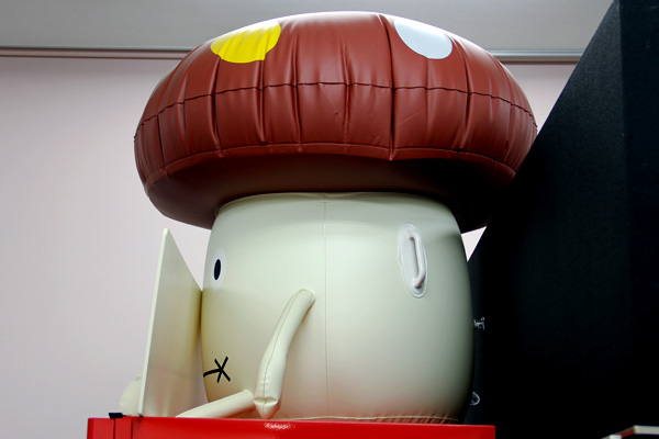 左サイドには、ケータイの展示・体験コーナー、自動販売機の上には巨大なドコモダケ、ぬりえコーナー・まんがコーナー、キッズスペースがあります。都心のドコモショップでは見たことの無いキッズスペースは新鮮に感じられます。