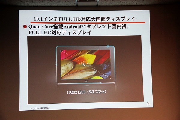 - フルHD(1920x1200)10.1インチIPS液晶・1.5GHzクアッドコア64bit CPU+6コア32bit GPU(K3V2)・Andrnid4.0搭載タブレット(Wi-Fiモデル)