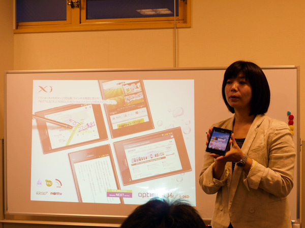 出席者には一人あたりOptimus itとOptimus Vuを各1台ずつ用意しており、実演を聞きながら手元の端末でも確認できるタッチ&トライを実現し、イベント終了後は端末のモニター貸出も実施しており、現在も、Twitterおよびブログでのレビューが多数掲載されています。